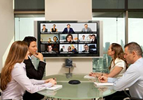 又称会议电视系统,是指两个或两个以上不同地方的个人或群体,通过传输线路及多媒体设备,将声音、影像及 文件资料互传,实现即时且互动的沟通,以实现会议目的的系统设备。视频会议的使用 有点像电话,除了能看到与你通话的人并进行语言交流外,还能看到他们的表情和动作,使处于不同地方的人就像在同一房间内沟通。